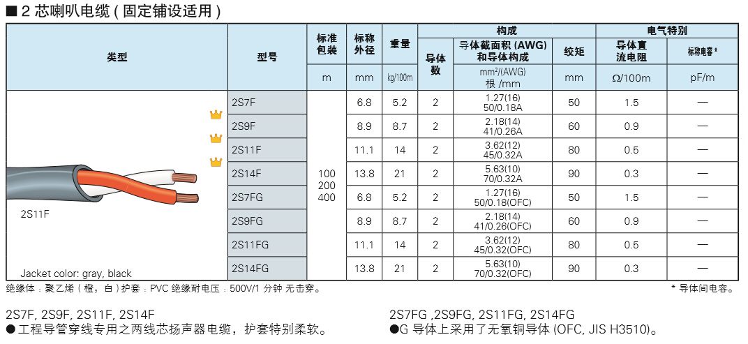 | 2S11FG | 11.1 | 14 | 2 | 3.62 (12) | 45/0.32 (OFC) | 80 | 0.5 | 55 | ||